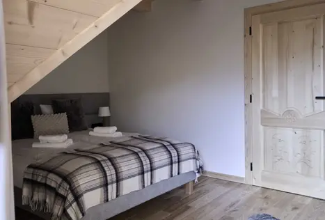 Otro de los complejos Tatra Wood House, esta vez de dos casas increíbles. La decoración de estas cabañas es una combinación de diseño tradicional de montaña y modernidad con un estándar muy alto de confort. La madera cálida y clara y los materiales naturales, como la lana o el fieltro, se combinan con tonos grises relajantes. El complemento perfecto es la espectacular vista que se extiende desde las ventanas: el panorama de los Tatras o Gubałówka.